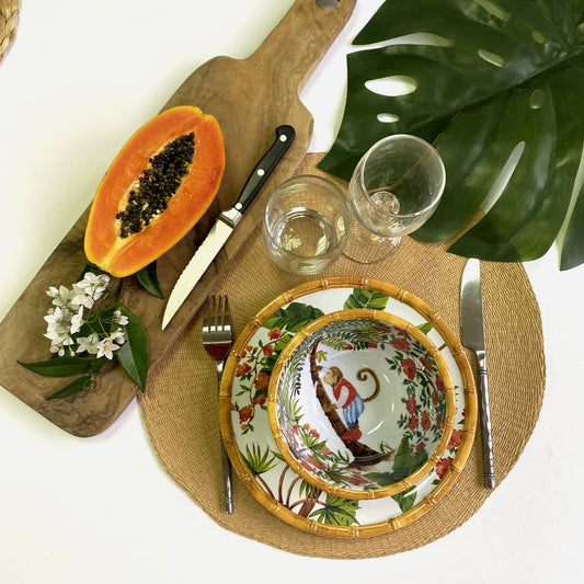 Nuestros cuencos de melamina son perfectos para tomar bebidas frías y calientes en el desayuno, o sopas en la cena. Los cuencos de melamina son perfectos para el uso diario, ¡pero también para poner bonitas mesas en tus comidas festivas! La gran ventaja de la vajilla de melamina es que es ligera, especialmente resistente a los golpes y apta para el lavavajillas, al tiempo que conserva su brillo con el paso del tiempo. Estos cuencos también son perfectos para servir aperitivos con los amigos o la familia. Con sus diseños coloridos y originales, ¡darán un toque de diversión a tus comidas! Para satisfacer todos sus deseos, las vajillas de melamina están disponibles en diferentes temas: Tucanes de Río, Selva, Flores exóticas, Lisboa... Sólo le queda vestir la mesa.