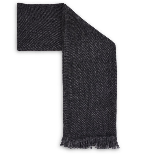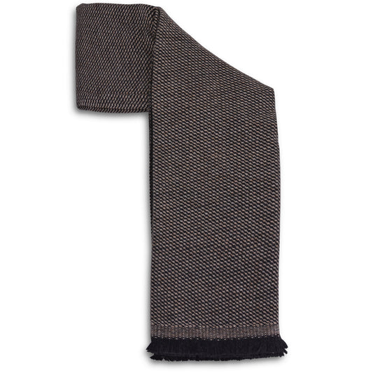 Confeccionada con especial cuidado para nuestros clientes, la bufanda de cachemira y lana con acabado de flecos presenta tres tipos de estampado (moteado, rombo y pequeño chevron).