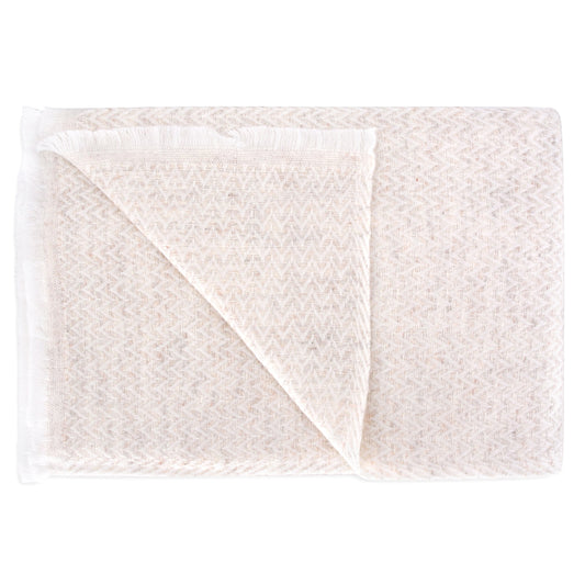 Cierre los ojos por un momento e imagínese en Nepal, cerca del Himalaya. La bufanda de cachemira y lana de Les Jardins de la Comtesse se teje en un taller tradicional a los pies de estas magníficas montañas. Esta bufanda/toalla de alta gama se fabrica utilizando únicamente los colores naturales del pelo más suave del cuello y el vientre de la cabra Capra Hircus, también conocida como "Changra", que vive en las alturas del Himalaya.