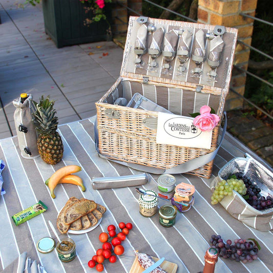 Les Jardins de la Comtesse han diseñado cestas de picnic para 6 personas de alta calidad para usted y sus amigos. Tanto si planea una gran comida familiar como una comida con amigos, le encantará el diseño y la practicidad de su cesta. Ya sea en el bosque, en la playa o en un parque, su cesta de picnic para 6 personas le resultará muy práctica para transportar la comida.