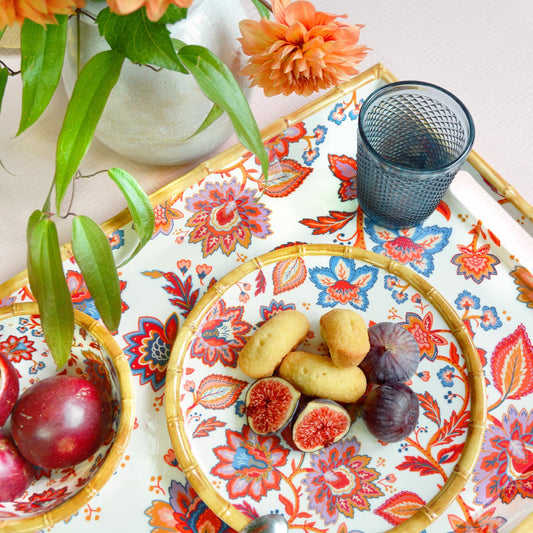 Fuente redonda de melamina con flores indias - Ø 35,5 cmJAIPUR- Plato redondo de presentación- Contorno efecto bambú- 35,5 cm de diámetroFuente redonda de melamina con flores indias - Ø 35,5 cmJAIPUR- Plato redondo de presentación- Contorno efecto bambú- 35,5 cm de diámetroPrecio habitual 21,08 €Precio habitualPrecio unitario / porPrecio de oferta 21,08 € -