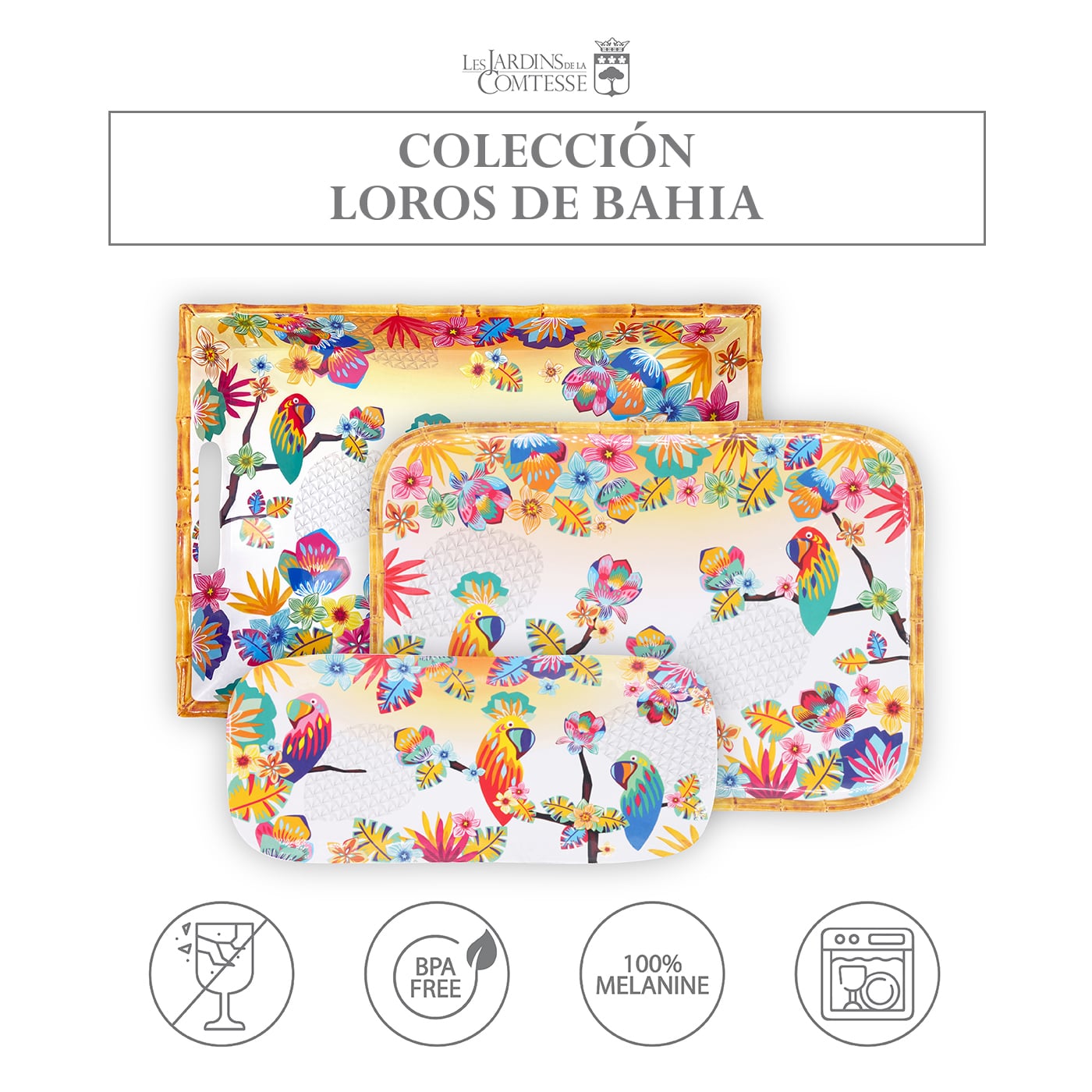 ¡Elija nuestra gran bandeja de melamina con asas "Loros de Bahía"!