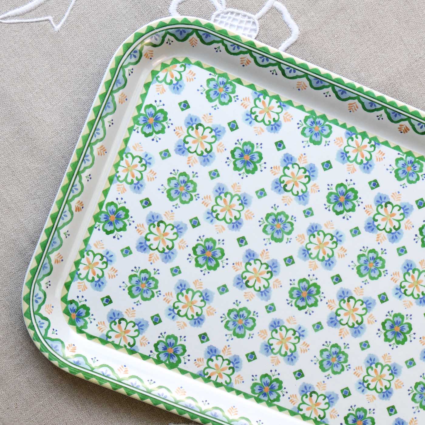Con sus motivos azules y verdes sobre fondo blanco, esta pequeña bandeja desprende una frescura estival y una elegancia intemporal. Su decoración minuciosamente trabajada la convierte en mucho más que un simple accesorio : es una invitación al viaje, una obra de arte útil que transformará su servicio en un momento de convivialidad y refinamiento.